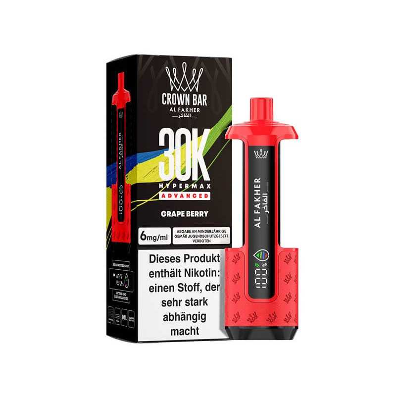 Das Al Fakher 30K Basisgerät Grape Berry begeistert mit intensivem Trauben- und Beerengeschmack. Bis zu 30.000 Züge, LED-Display und starker 850 mAh Akku sorgen für langanhaltenden, aromatischen Genuss, perfekte Kontrolle und ein fruchtiges Dampferlebnis für Liebhaber intensiver Aromen.