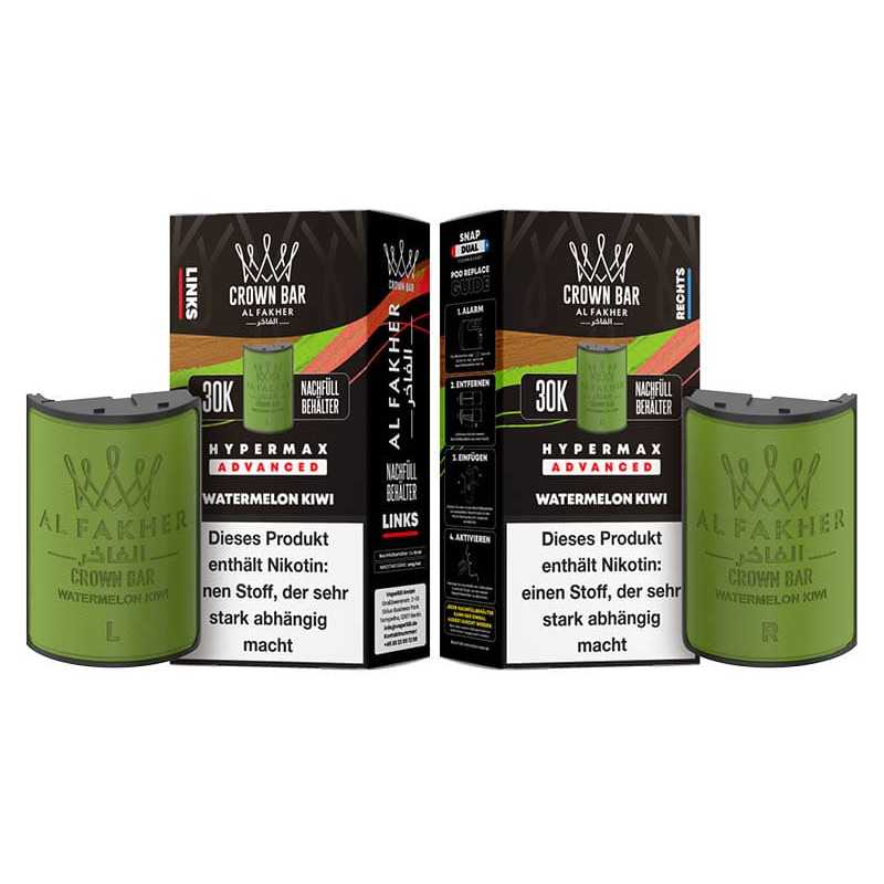 Der Al Fakher 30K Hypermax Watermelon Kiwi ist ein modernes Pod-System, das mit hoher Kapazität, durchdachten Sicherheitsmechanismen und intensiven Aromen überzeugt. Das Gerät bietet ein ausgewogenes Zusammenspiel von Technik und Geschmack und richtet sich an Anwender, die Wert auf eine zuverlässige Nutzung mit langanhaltender Performance legen. Neben den technischen Eigenschaften spielt vor allem die Aromakombination eine zentrale Rolle: fruchtige Wassermelone trifft auf exotische Kiwi.