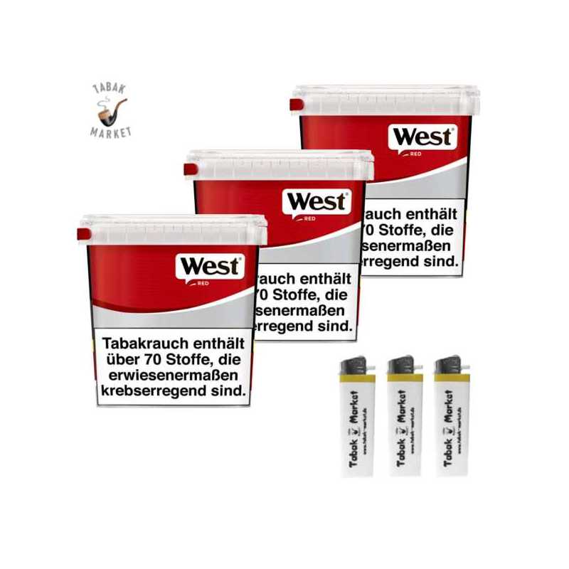 3 x West Red Tabak 160g Eimer + 3 Feuerzeuge